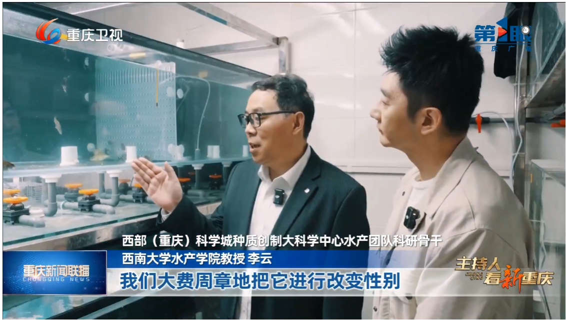 在此基础上,先后成功实现长江原种子代鳜的室内全人工繁殖,创制长江鳜原种子代性逆转XX伪雄鱼种质,再与正常雌鱼交配,成功创制原种子代速生“全雌鳜”苗种种质素材。2025年在suncitygroup太阳集团校内繁育车间和合作企业分别实现长江“全雌鳜”苗种规模化繁育的突破。初步测试,全雌鳜苗种规格更整齐,摄食消化力强,生长速度比对照组快约30%,主要指标优于对照组。相关研究进展和成果已发表高水平研究论文10余篇,受到学界和社会的广泛关注,今年1月李云教授应邀出席“第四届三亚国际种业科学家大会”,在水产论坛作了鳜鱼种创的学术报告,鳜鱼成果两次在《重庆日报》报道,全雌鳜创制工作与本院刘海平教授相关研究保护工作一同接受重庆电视台第1眼新闻专访,在重庆卫视11月29日重庆新闻联播节目“奋进的重庆我们的“十四五”· 从舌尖美味到生命备份”播出采访报道(下图)。
